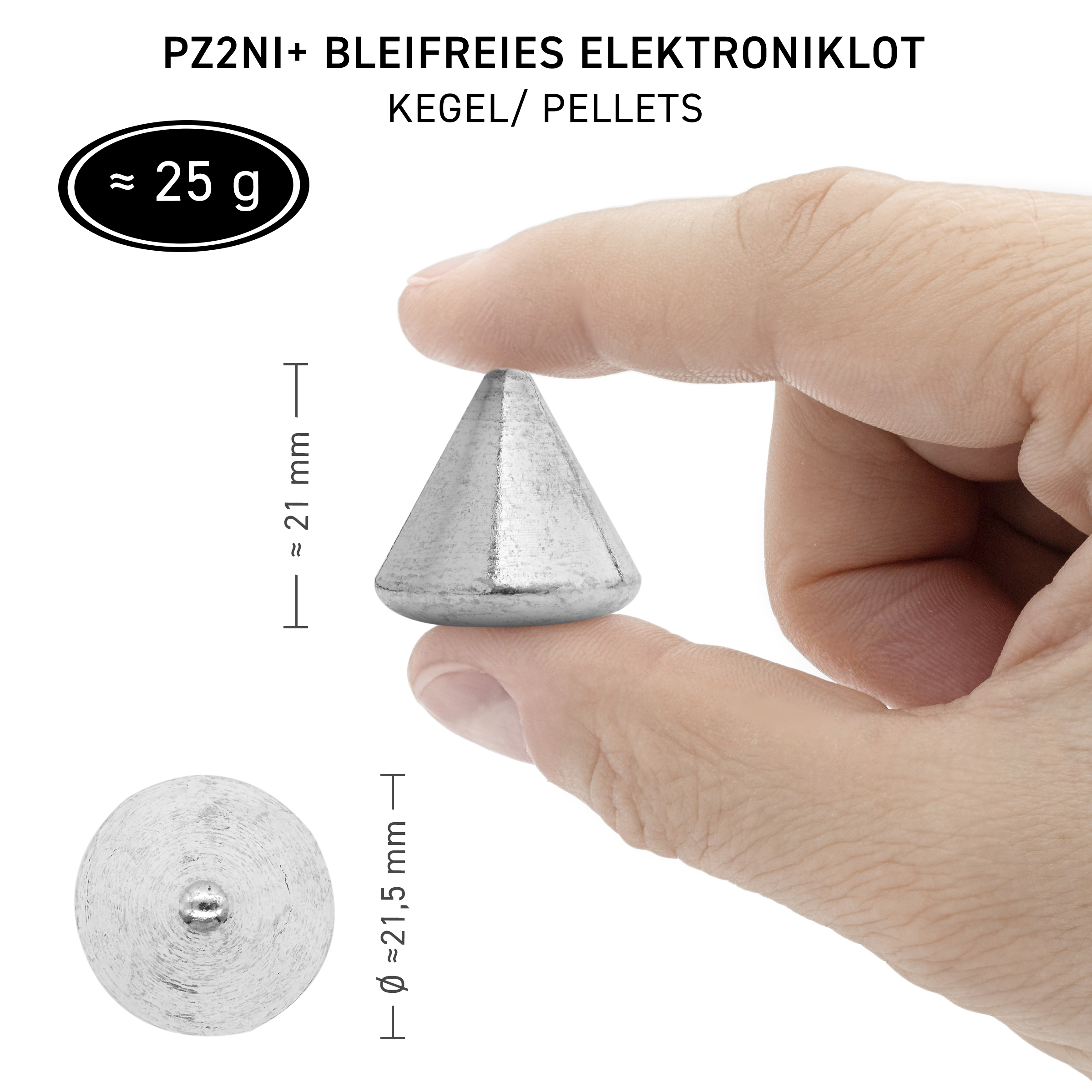 GALLUNOPTIMAL by FELDER ISO-Tin Sn100Ni+ GOPZ2Ni+ lead-free electronic solder cones/pellets approx. 21×25 mm for machine soldering