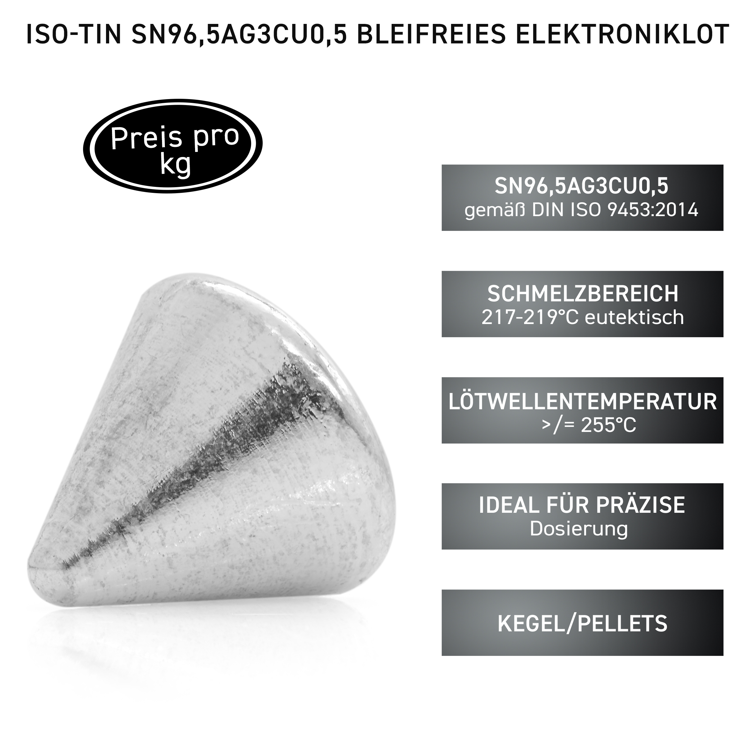 (Deutsch) GALLUNOPTIMAL by FELDER ISO-Tin Sn96,5Ag3Cu0,5 Elektroniklot GOPZ2LF Kegel/Pellets ca. 21×25 mm bleifrei für Maschinenlöten