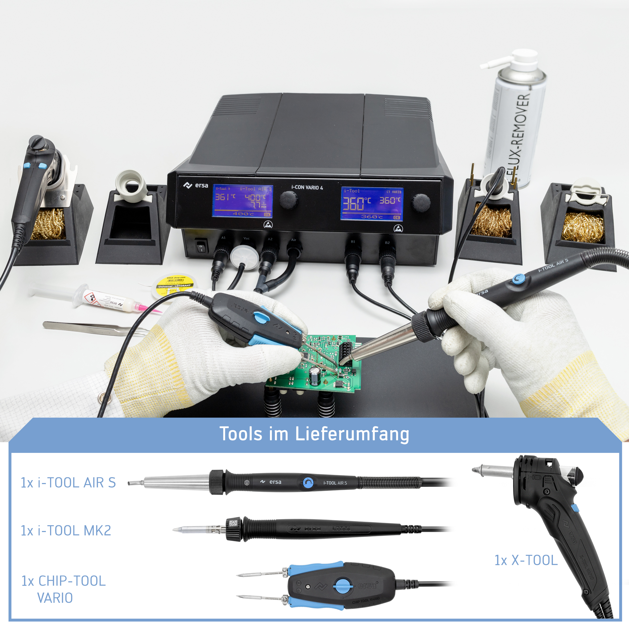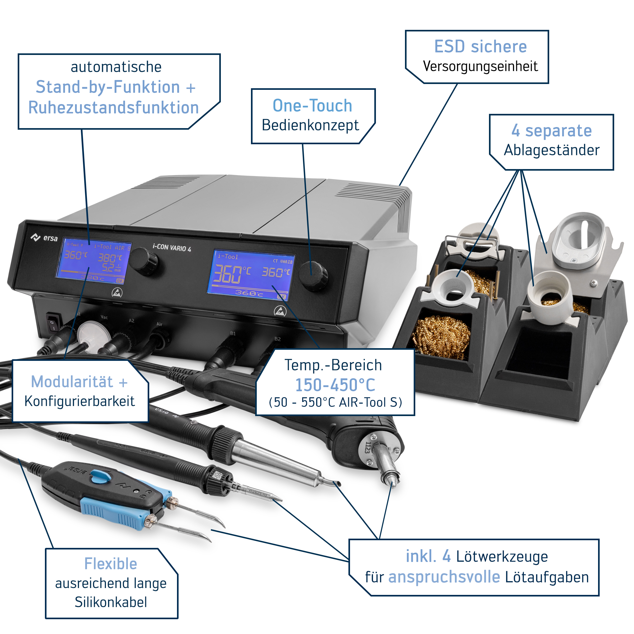 ERSA VARIO4 MK2, ESD 4 Kanal Löt-& Heißluftstation mit Vakuum, i-TOOL, CHIP-TOOLvario, X-TOOLvario & AIR-TOOL, Auto-Standby