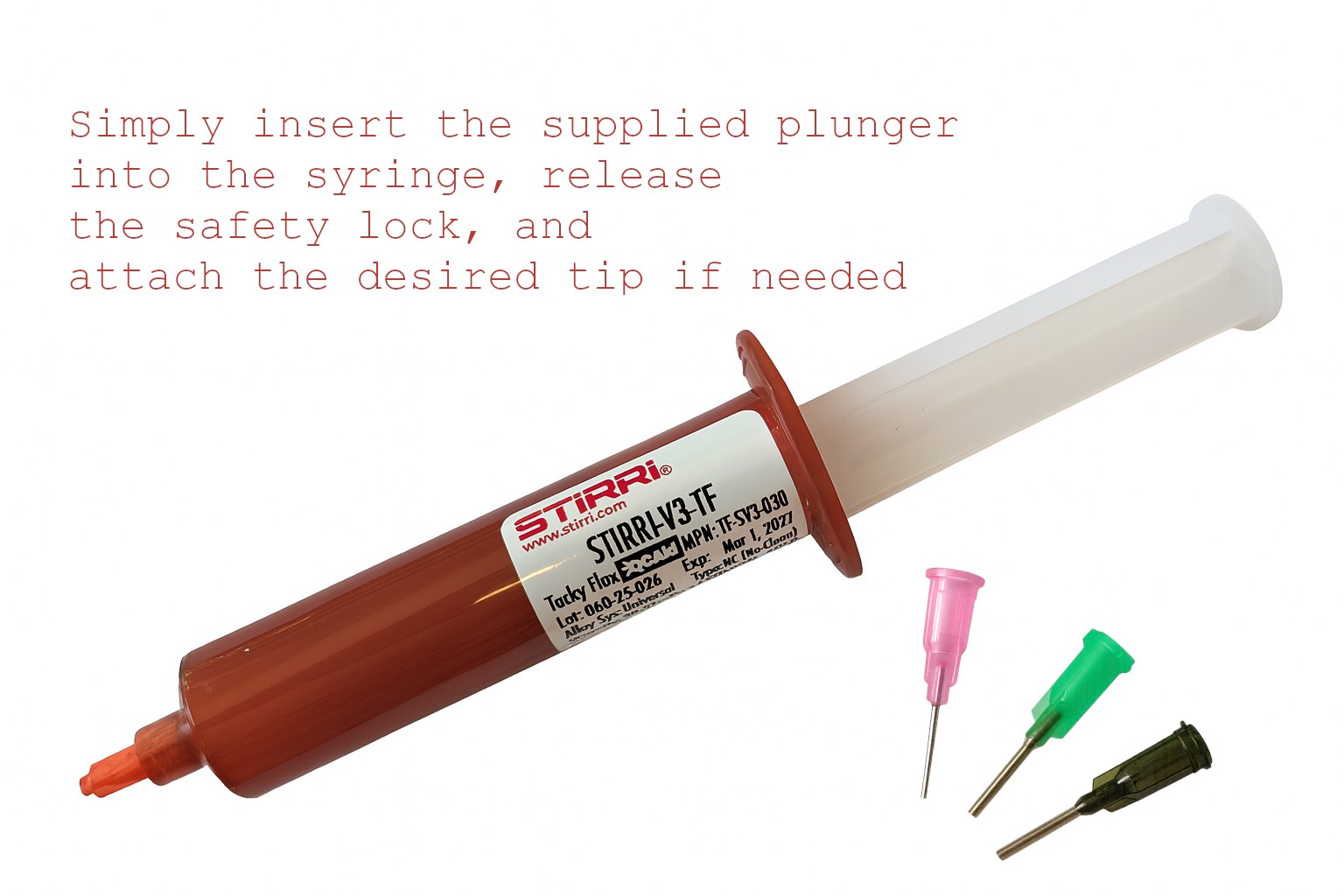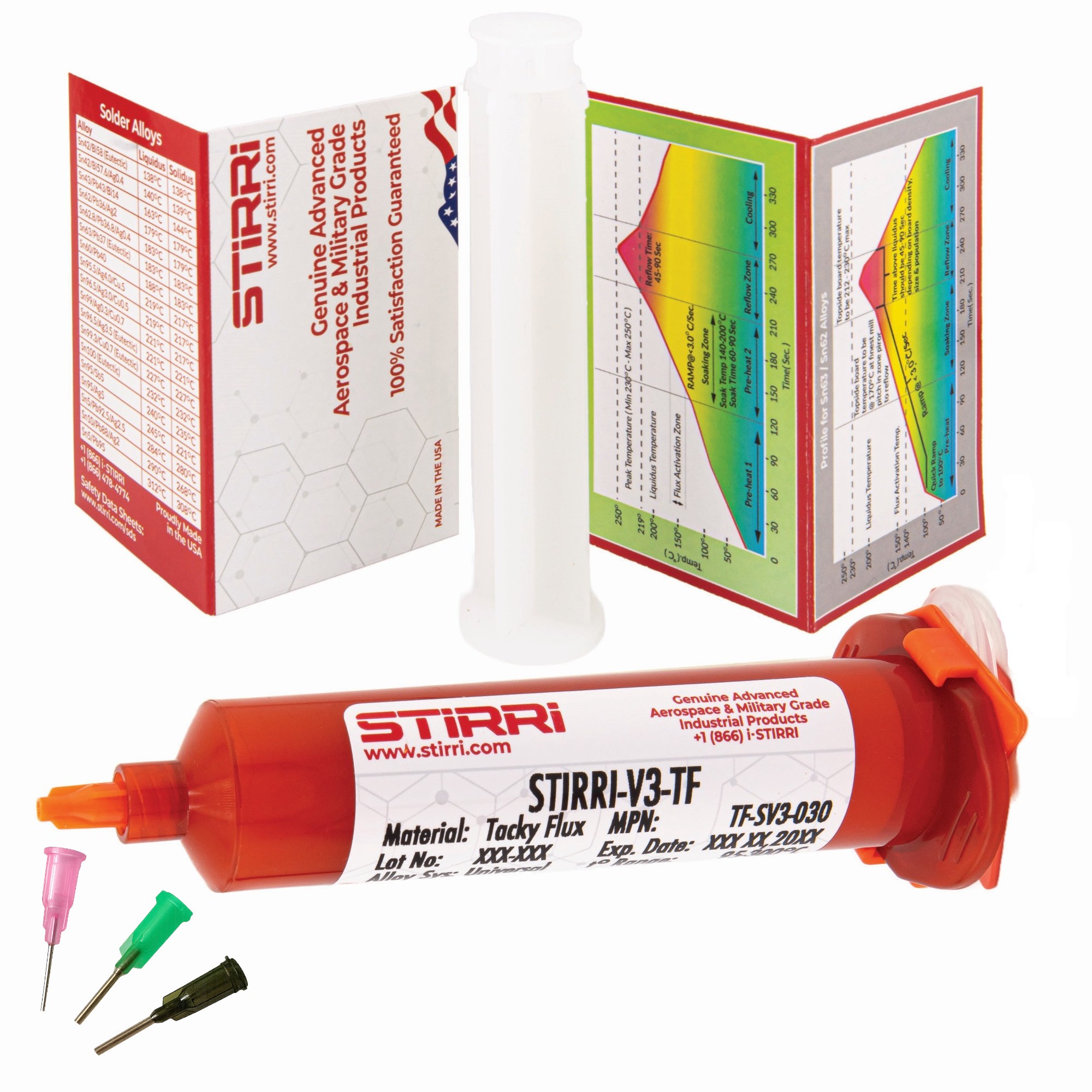 – 30 g Flussmittelcreme STIRRI-V3-TF in praktischer Dosierspritze.